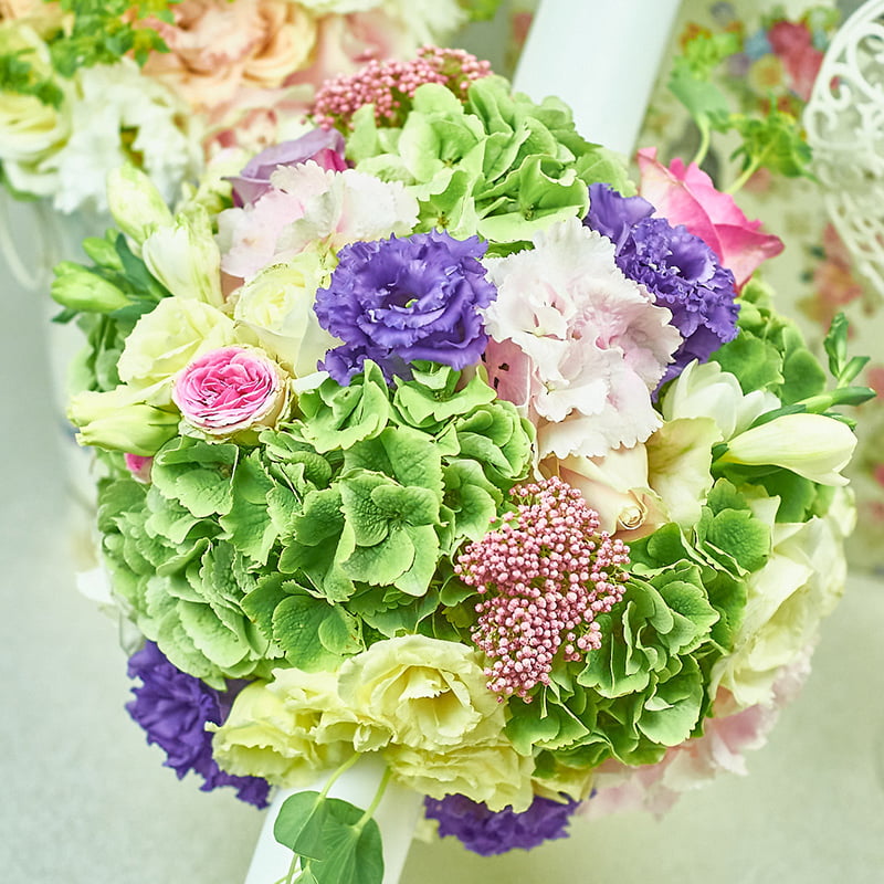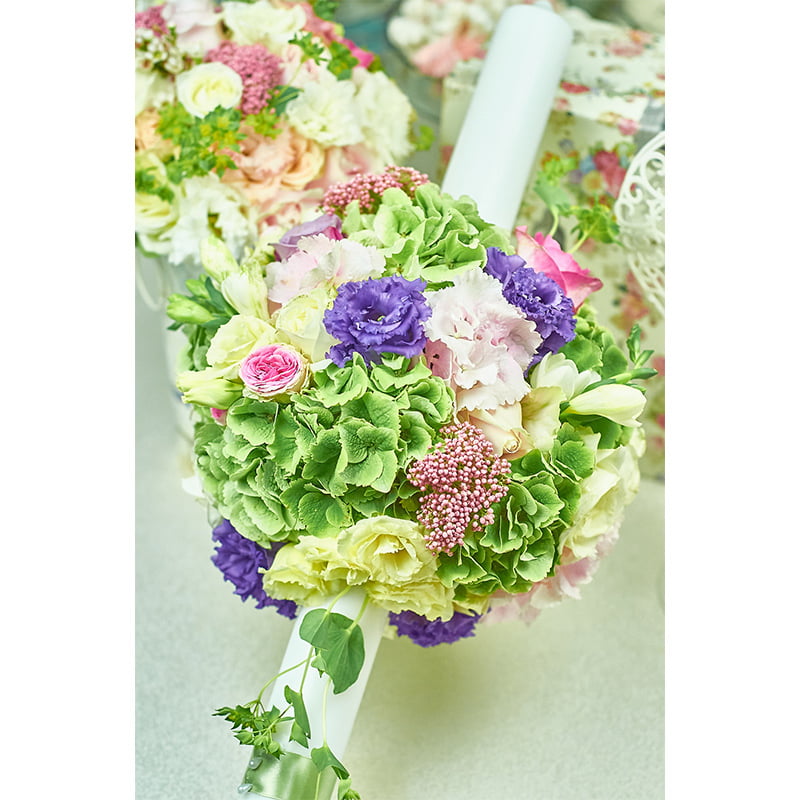 Lumanare cununie wings in stil romantic lucrata pe rotund, imbinare de forme, texturi, armonie cromatica, o gama variata de flori alegerea perfecta pentru nunta.