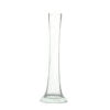 Transparent glass vase in the shape of an hourglass.